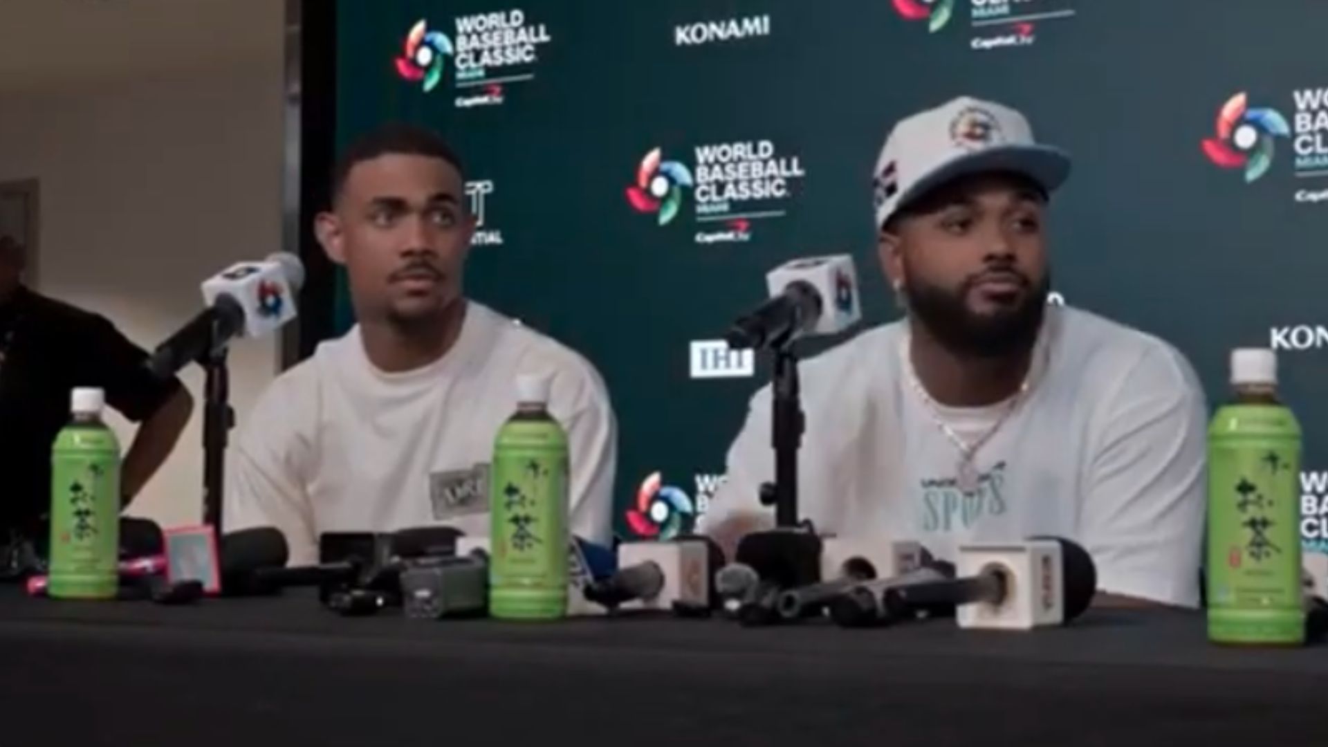 El entusiasmo y la energía de la nueva generación del béisbol dominicano se hicieron sentir en la sala de prensa del Clásico Mundial de Béisbol, donde Julio Rodríguez y Junior Caminerocompartieron impresiones tras la victoria de la República Dominicana.