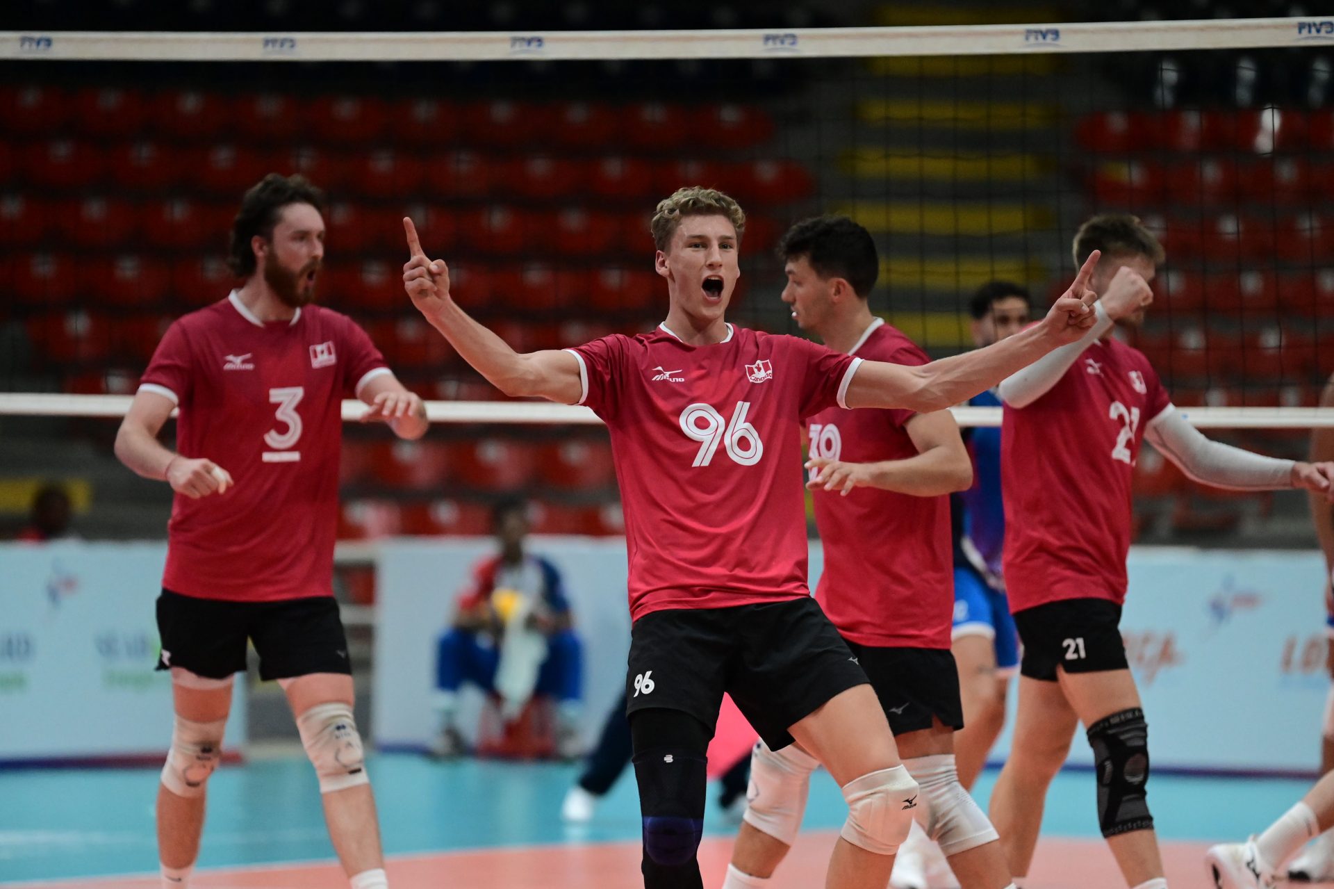 SANTO DOMINGO, República Dominicana, 15 de julio de 2024.- El equipo de Canadá batalló durante tres sets con Puerto Rico y al final ganó con marcador de 3-0 (25-22, 25-21, 25-23) para comenzar con victoria su participación en la XVII Copa Panamericana de Voleibol Masculino en el Pabellón Nacional de Voleibol.
