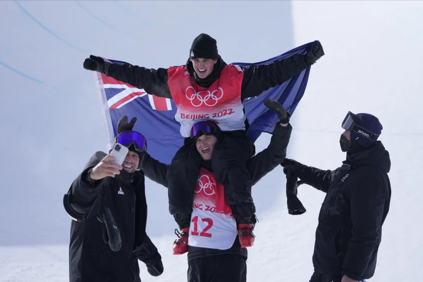 Nico Porteous de Nueva Zelanda se sintió feliz de superar el halfpipe para el oro en el esquí freestyle. El medallista de bronce Alex Ferreira estuvo feliz de simplemente escapar.
