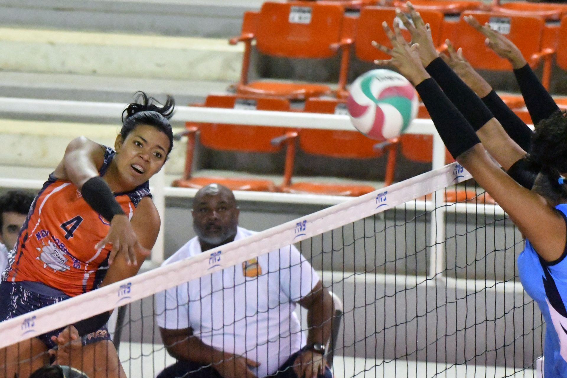 Erasma Moreno del equipo Caribenas ataca contra Las Guerreras. Fuente Externa
