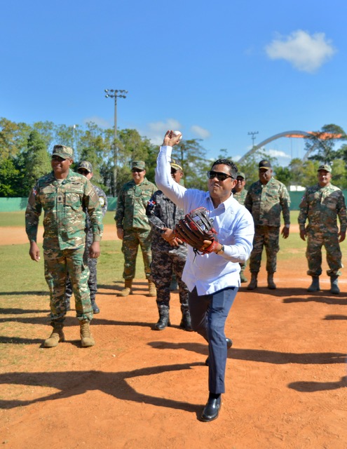 Luego de un breve acto inaugural, el Ministro de Deportes, Kelvin Cruz, realizó el lanzamiento de honor para dejar inaugurado el torneo de béisbol correspondiente a la versión 54 de los Juegos Deportios Militares de las Fuerzas Armadas y la Policía Nacional.