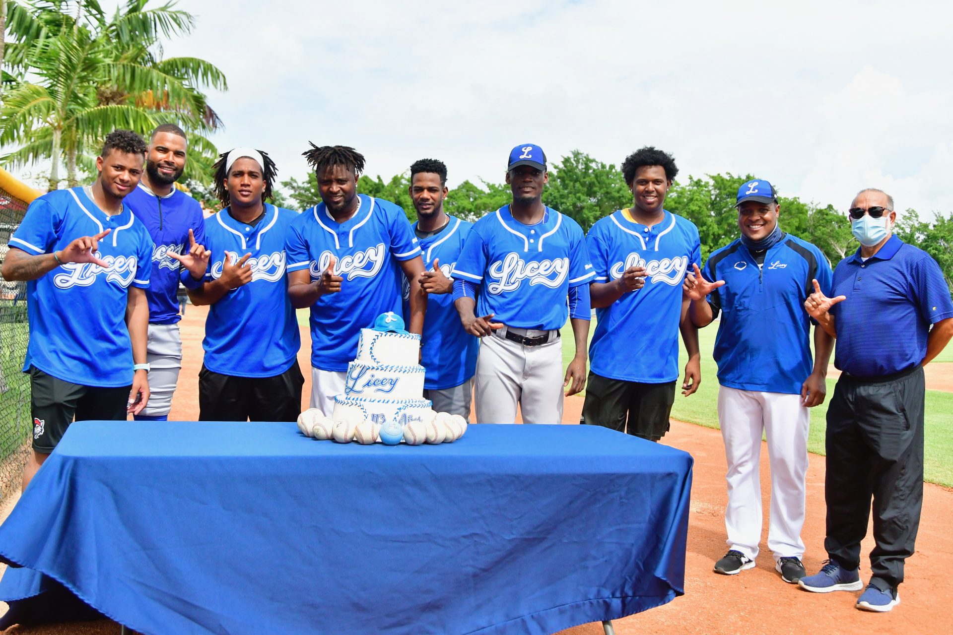 Un gran pastel con los colores del equipo (blanco y azul) con la inscripción “Licey, 113 años” y coronado con la letra ‘L’ en una gorra simulada, que disfrutaron los jugadores en su centro de entrenamientos para la temporada 2020-2021 que comenzará el próximo domingo 15, figuró como mero testimonio de una simbólica celebración en las facilidades de los Rojos de Cincinnati en la zona de Boca Chica.