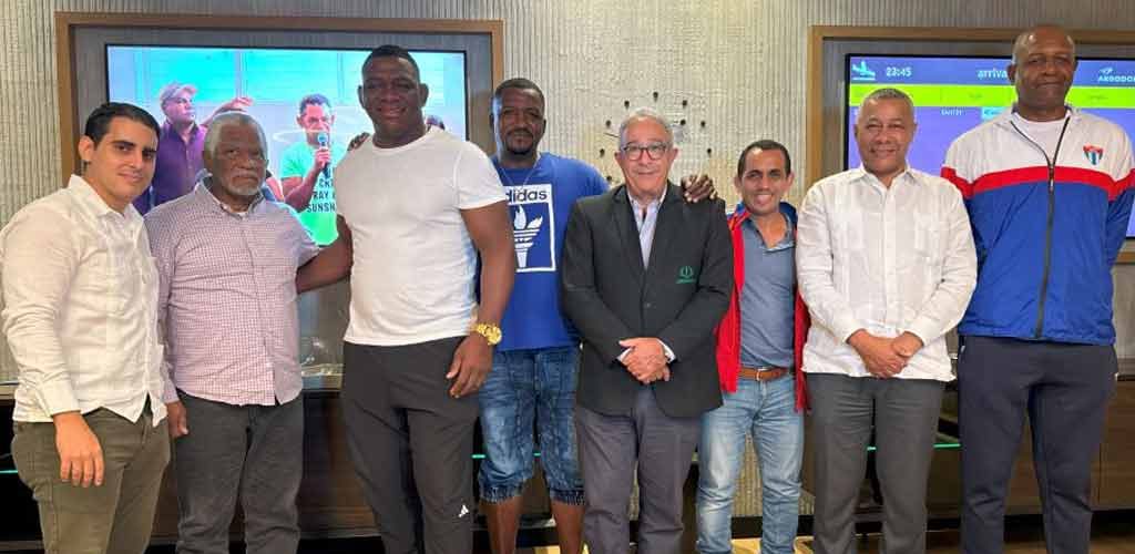 Su llegada se produjo anoche por el Aeropuerto Internacional de Las Américas. Fue recibido por el doctor Dionisio Guzmán, Ángel Arzuaga Reyes, embajador cubano en el país y el inmortal del deporte Isaac Ogando, con quien agotará una agenda en Bayaguana, Monte Plata, donde este sábado la Sala Capitular del Ayuntamiento lo declarará «Hijo Adoptivo del Municipio».