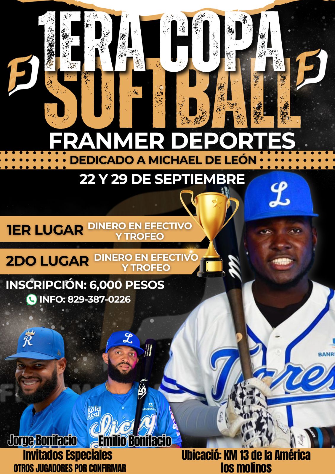 Santo Domingo.- La 1era. Copa de Softboll“Franmer Deportes”, organizada por el joven comunicador Franmer Hernández, se celebrará este domingo 22 de septiembre en el Play de Los Molinos, Los Frailes 3ero., Autopista Las Américas, KM. 13, Santo Domingo Este.