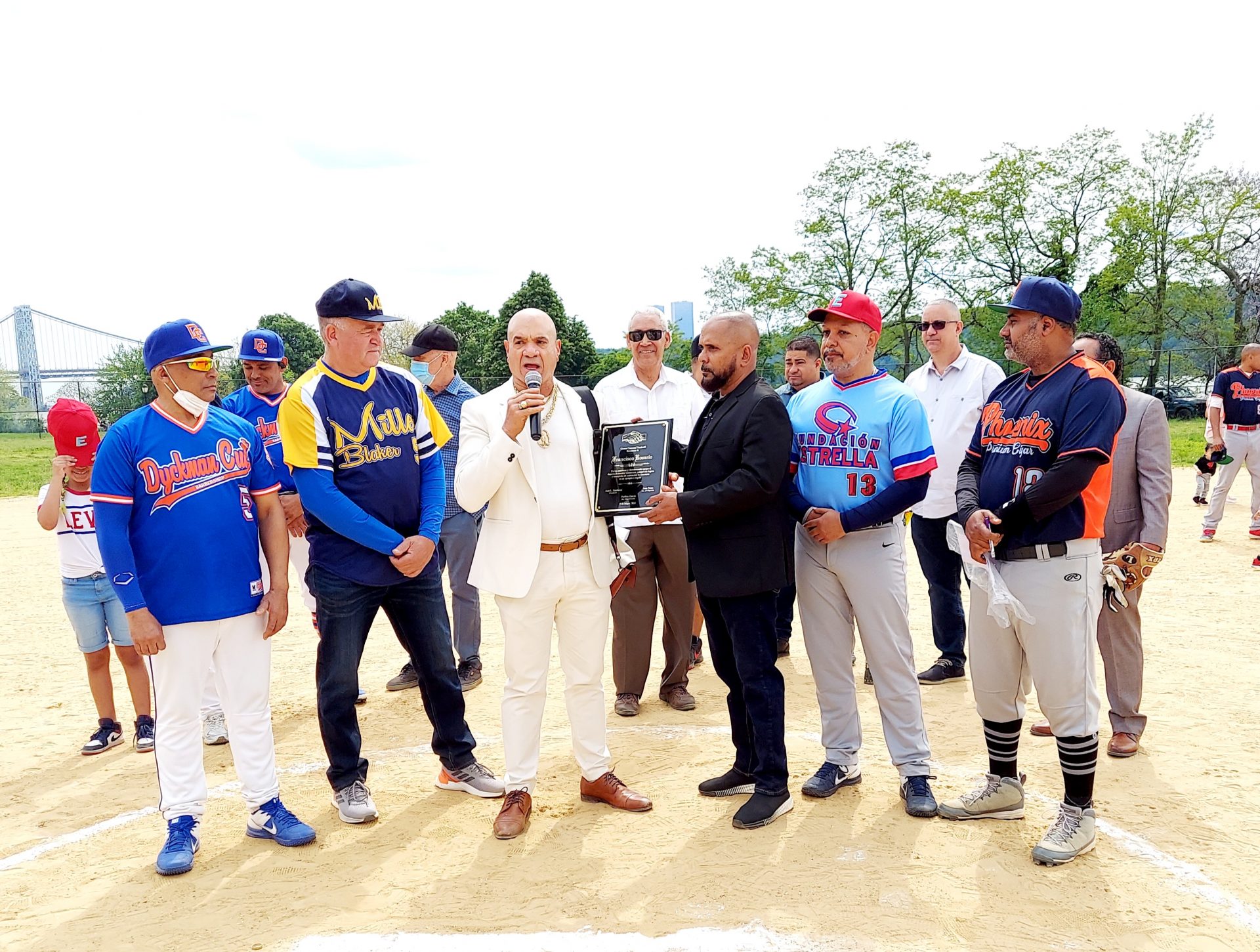 La ceremonia, conducida por Joaquín Peña se desarrolló en los terrenos de La Marina en el sector de Dyckman en el alto Manhattan después de alienados alrededor del diamante se escucharon los himnos de Estados Unidos y República Dominicana.