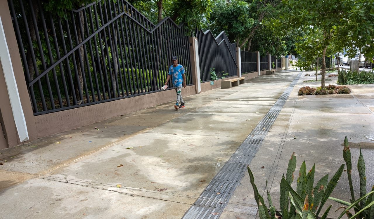 Alrededor de la acera exterior del Centro Olímpico Juan Pablo Duarte se insertará una franja podotáctil con la finalidad de que, en especial, los no videntes puedan transitar por la instalación rodeada a su vez de cuatro grandes avenidas.