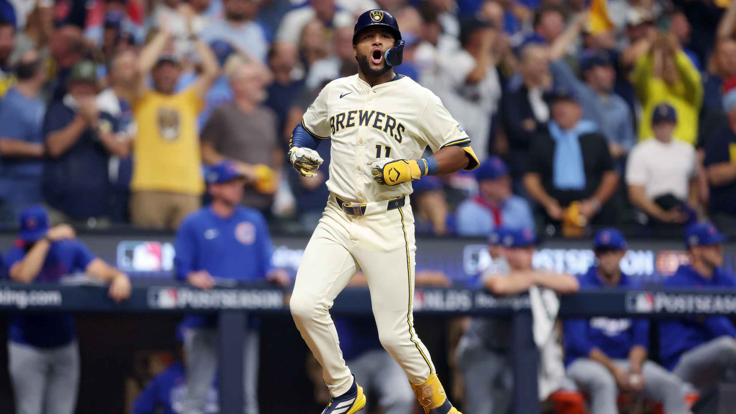 Pero el lunes fue una noche diferente: Vaughn y Contreras la botaron ante el abridor zurdo de los Cachorros, Shota Imanaga, y Chourio se voló la cerca contra el derecho venezolano Daniel Palencia. La recta de 101.4 mph con la que Chourio conectó el jonrón fue la más rápida en la historia de la postemporada (desde que se lleva registro en 2008) en ser enviada fuera del parque. El récord anterior pertenecía al dominicano Nelson Cruz, quien conectó un jonrón ante un pitcheo de 100.6 mph de Justin Verlander en el Juego 5 de la Serie de Campeonato de la Liga Americana de 2011 con los Rangers.