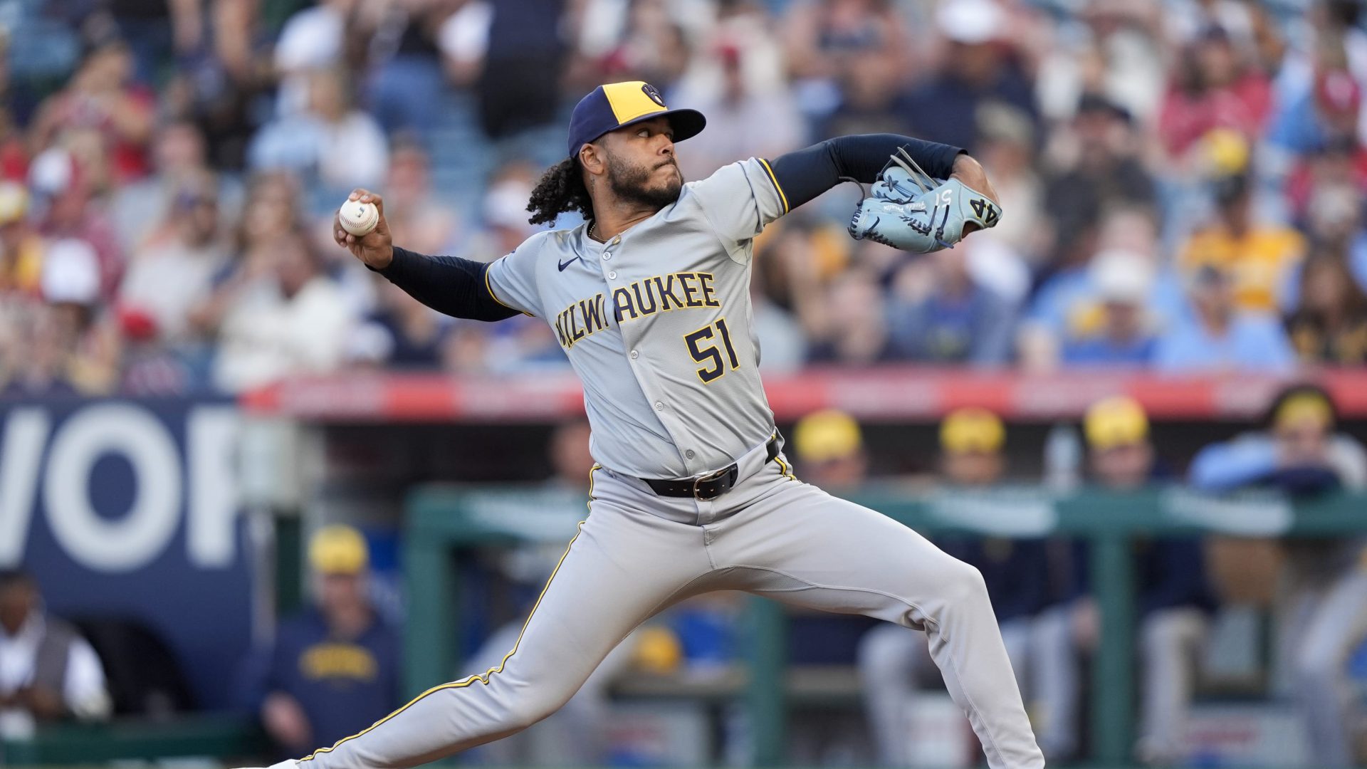 ANAHEIM,. California — El dominicano Freddy Peralta repartió ocho ponches en seis entradas con pelota de tres hits y superó en el duelo de pitcheo a Tyler Anderson, para que los Cerveceros de Milwaukee se impusieran el miércoles 2-0 sobre los Angelinos de Los Ángeles.