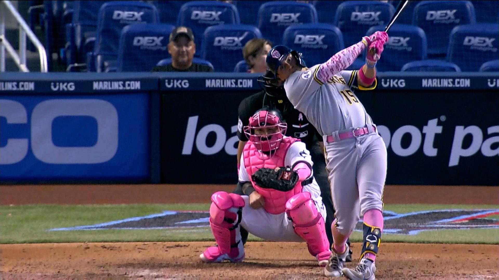 Por los Marlins, los venezolanos Miguel Rojas de 5-1, Jesús Aguilar de 1-0, Sandy León de 3-0. El puertorriqueño Isan Díaz de 3-0. El dominicano Magnerius Sierra de 1-0.