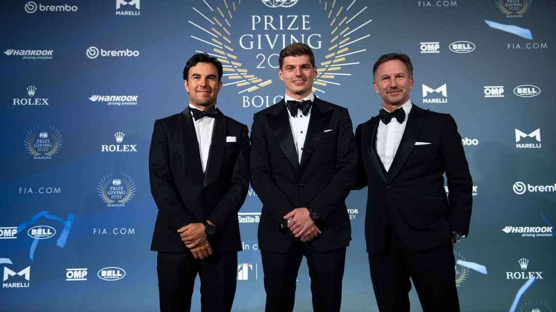 El piloto de Red Bull estuvo presente en la gala de la FIA celebrada este día y subió al estrado para recibir su trofeo por el segundo lugar en la temporada 2023 que alcanzó con la escudería austriaca al sumar 285 unidades.