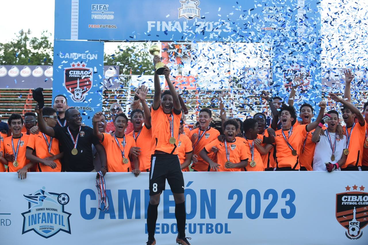 SANTIAGO.- Cibao FC se coronó campeón del Torneo Nacional de Clubes Infantil 2023 tras vencer dos por cero en la gran final a Santa Fe FC, en partido celebrado este sábado 30 de septiembre en el Estadio Cibao FC de la ciudad de Santiago de los Caballeros ante una gran cantidad de público.