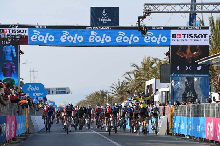 Roma, (Prensa Latina).- El belga Wout Van Aert ganó hoy la primera etapa de la carrera ciclística Tirreno-Adriático, disputada en un circuito de 156 kilómetros alrededor de la localidad italiana de Lido di Camaiore.