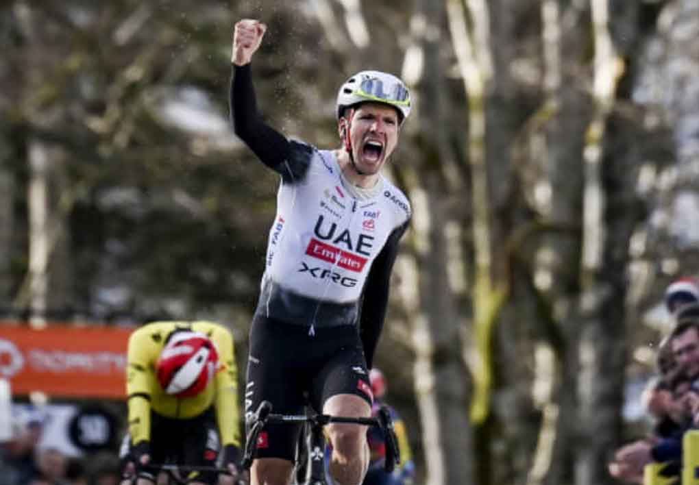 Miembro del equipo UAE Emirates-XRG, el ibérico marcó un crono de 3:56.54 horas en una jornada donde la lluvia hizo acto de presencia, para desplazar al español Enric Mas (Movistar), mantener su camiseta amarilla de líder y alcanzar el mayor triunfo de su carrera.