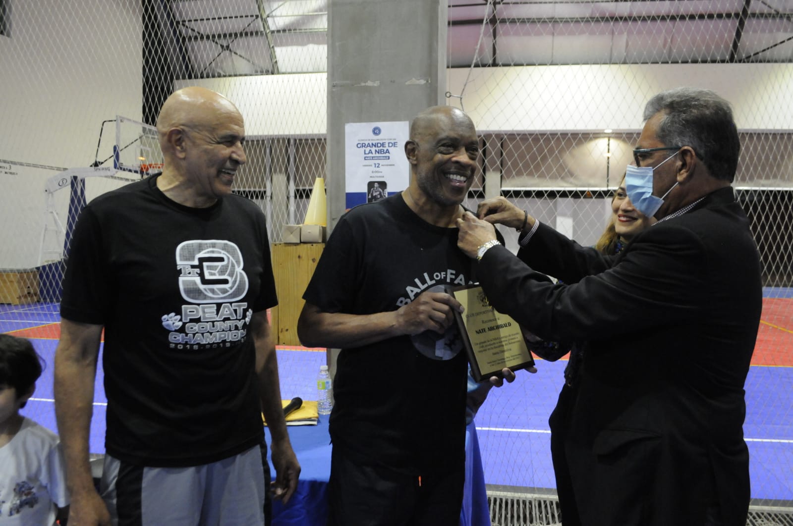 El exjugador de la NBA, Nate Archibald, recibió un reconocimiento de parte de la Junta Directiva del Club Deportivo Naco, luego que este impartiera una clínica de baloncesto con más de 50 jugadores de baloncesto de la entidad.