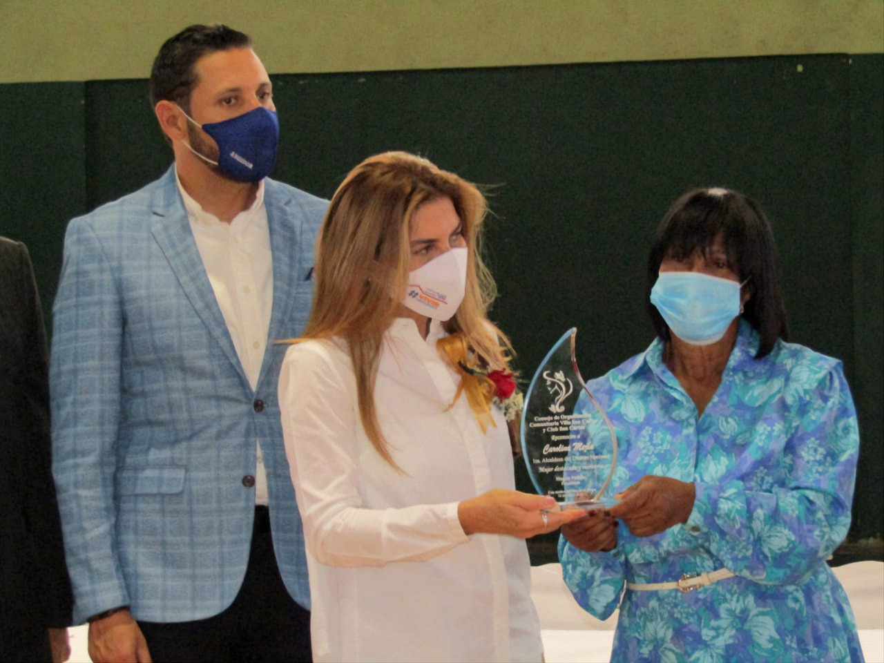Durante el acto, la alcaldesa Mejía junto a la señora Vásquez, ministra sin cartera, entregaron un reconocimiento especial a la líder comunitaria Magalys Padilla. Aprovecharon la ocasión para ponderar la trayectoria de Padilla y resaltar su vocación de servicio en favor de las familias más necesitadas. Tras recibir el reconocimiento, Padilla, quien se encontraba visiblemente emocionada, afirmó que Dios le ha permitido vivir por un propósito claro y definido que es servir a los más necesitados tanto en su sector San Carlos como en zonas aledañas.