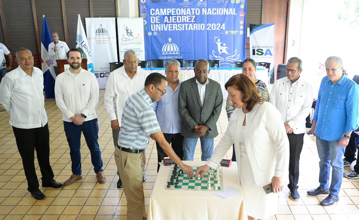 Arrancó el torneo de ajedrez de los Juegos Universitarios 2024, por la copa Miderec y la participación de 19 universidades, 30 equipos, 19 masculino y 11 femenino, en la Universidad Isa de Santiago que celebra su 60 aniversario. Fuente Externa