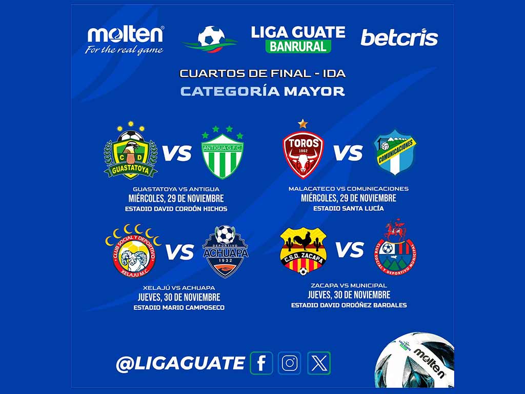 Los encuentros de vuelta de esta llave están programados para el próximo sábado, mientras mañana abrirán Municipal (segundo) con Zacapa FC (séptimo) y el Deportivo Achuapa (primero) rivalizará ante Xelajú MC (octavo).