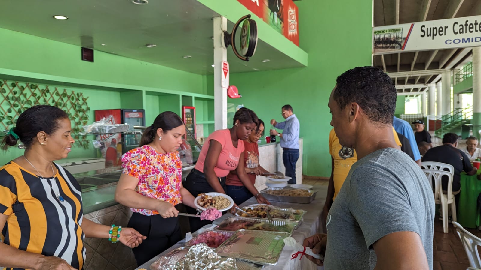El ágape tuvo lugar en las instalaciones del mencionado hipódromo, donde los mozos de cuadra compartieron un almuerzo y recibieron RD$1,500 pesos cada uno, como regalo de la Comisión Hípica Nacional.