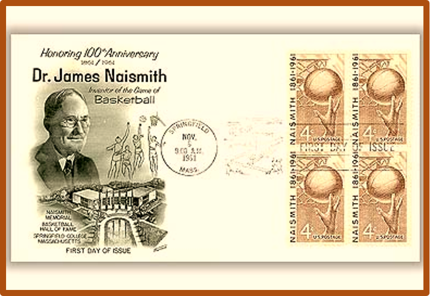 Un dia como hoy 6 de noviembre de 1961 el gobierno de Estados Unidos emite un sello en honor a la conmemoración del centenario del nacimiento de James Naismith (6 de noviembre de 1861-28 de noviembre de 1939), inventor del baloncesto.