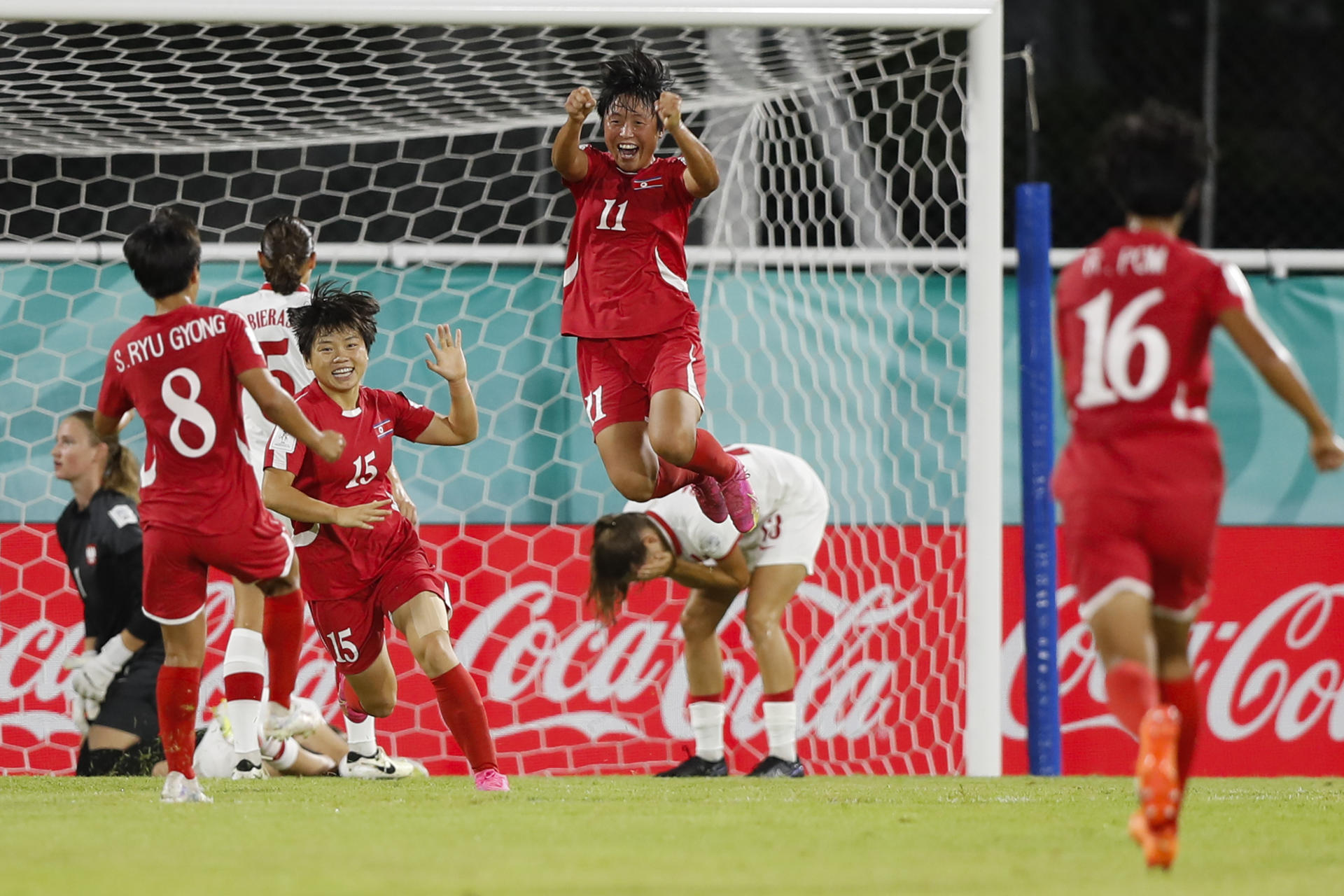 Mientras todo era felicidad en el banquillo norcoreano, muchas de las polacas estallaron en llanto al escuchar el pitido final.