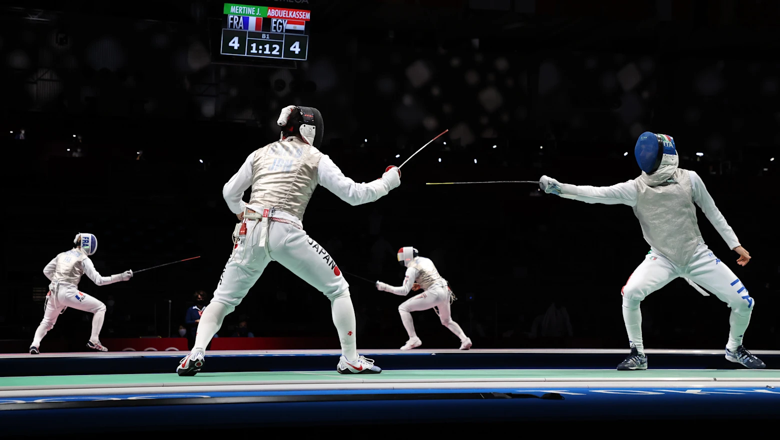 Las competencias individuales de esgrima constan de tres rondas que duran tres minutos cada una, o hasta que un atleta toque al oponente 15 veces. El tirador que haya realizado el mayor número de toques será declarado vencedor. Si al final del tiempo reglamentario las puntuaciones son iguales, los atletas competirán por un golpe decisivo, con un límite de tiempo máximo de un minuto.