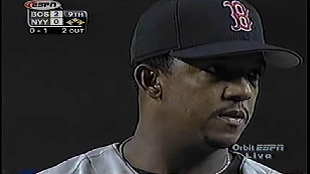 Pedro Martínez estaba con el agua al cuello. Ciertamente habían 2 outs, pero con la casa llena tenía que enfrentar a un cuarto zurdo en línea, y nada más y nada menos que Tino Martínez.