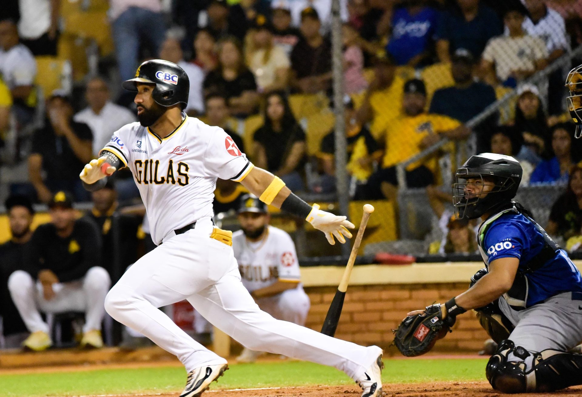 En el sexto, las Águilas hicieron otra con un out: sencillos de Aderlin Rodríguez y Juan Lagares; Webster Rivas negoció transferencia para llenar las bases, y Aderlin anotó por “wild pitch” de Andrew Pérez.