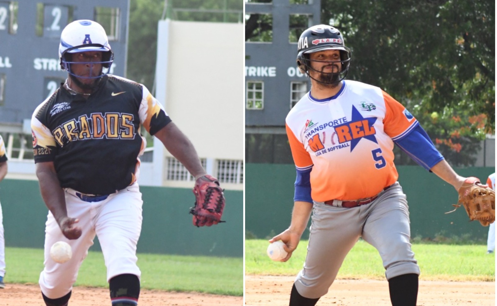 Lugueris Paniagua (izquierda) y Carlos Henríquez cobraron méritos en los partidos de apertura del IX torneo Corpus Christis de Softbol, que organiza la liga Los Mellos Softball Club. (Fuente Externa).