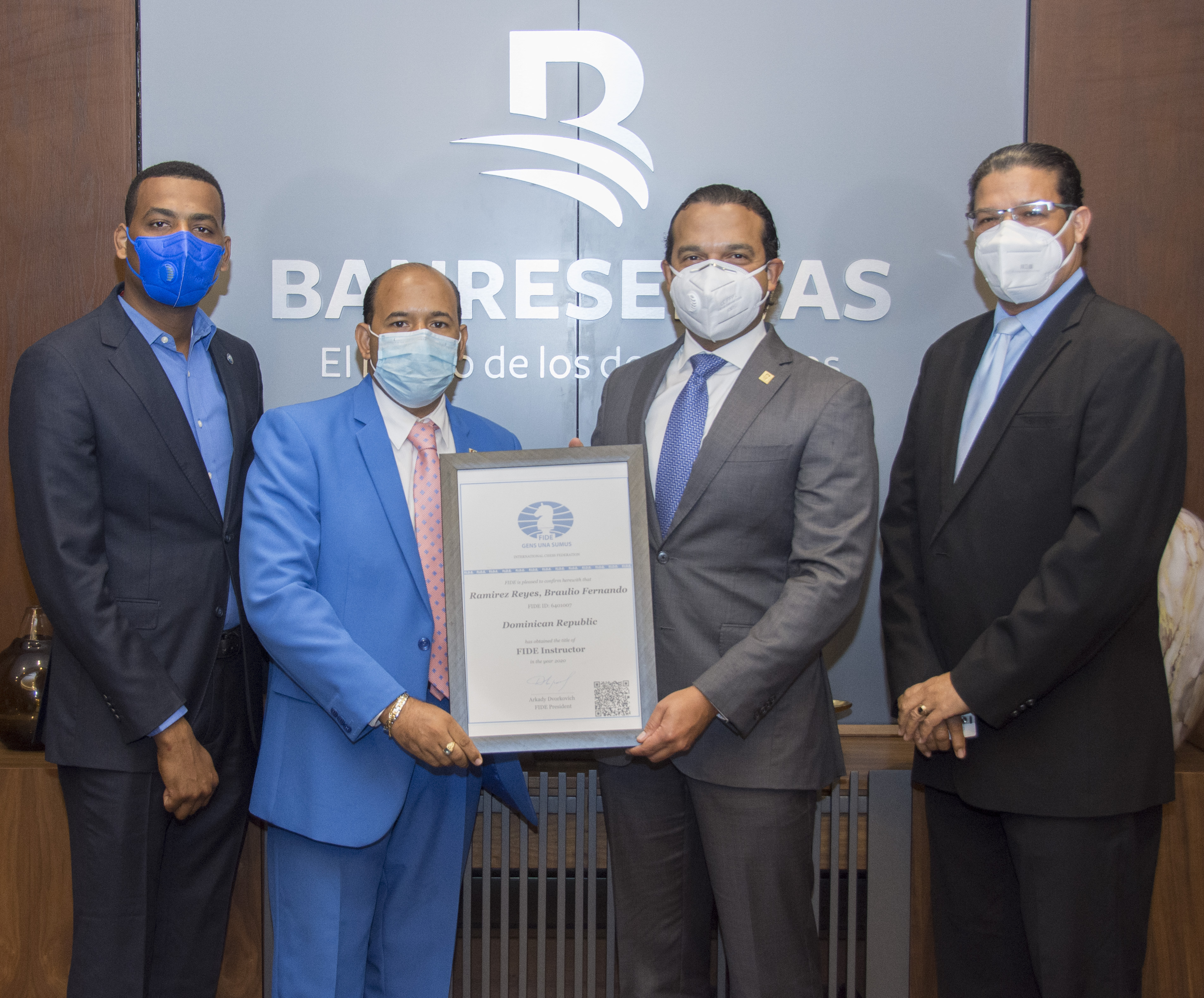Pedro Domínguez Brito Añadió que se estará disputando la primera Copa Interbancaria de ajedrez Virtual y aprovechó la ocasión para felicitar al equipo de ajedrez de Banreservas que encabezan los Maestros FIDE Luis Lorenzo y Braulio Ramírez seguido de Eliezer de Jesús González, Manuel Pérez Vásquez, Gil Ramírez, Feliz Bienvenido Deward, Cesar Lisandro Segura, Julio Rodríguez y Ramon Camarena.