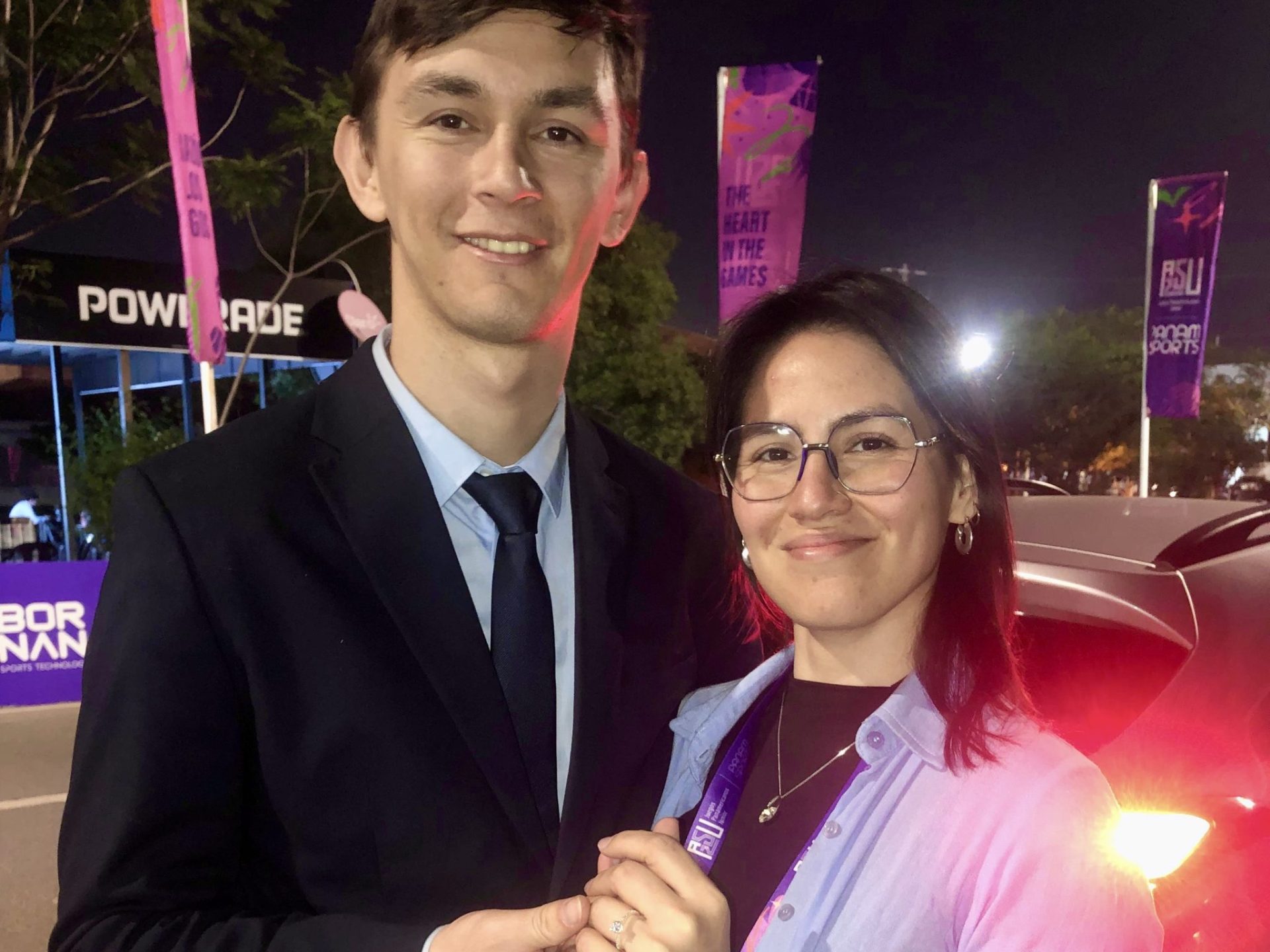 Hoy la propuesta llegó en el tatami, justo en medio de un receso, Braian se arrodillo y con mucha valentía le propuso a Kimberly que fuera su esposa. En medio de la emoción, ella recibió el anillo y la felicidad de llenar el corazón con la persona que ama y comparte sus gustos por el deporte.