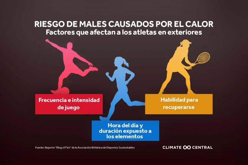 Un desglose del riesgo de calor por evento deportivo: Algunos deportes al aire libre se ven afectados por el calor más que otros. La duración, la intensidad e incluso la superficie de juego del deporte pueden aumentar los riesgos de calor.