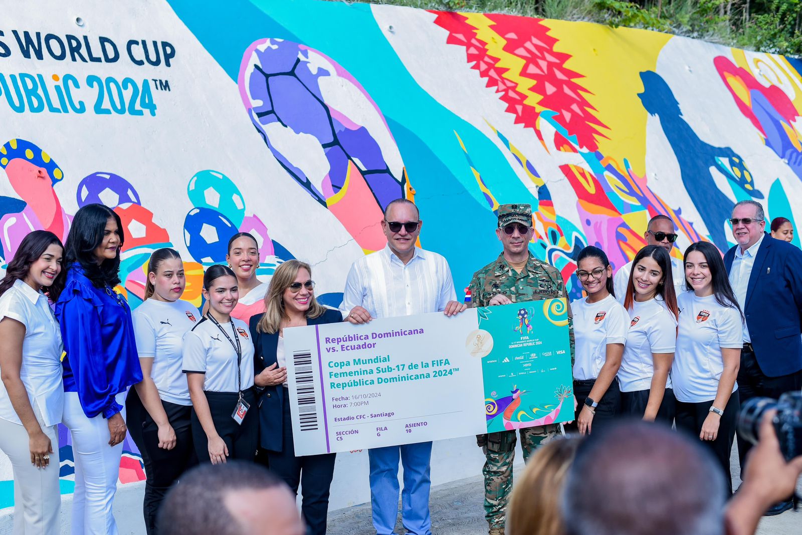 SANTIAGO*. – El alcalde Ulises Rodríguez, junto a representantes de la FIFA y el Comité Organizador de Santiago, inauguraron este jueves un colorido mural alusivo al Campeonato Mundial de Fútbol Femenino Sub-17, que se celebrará del 16 de octubre al 3 de noviembre en Santiago y Santo Domingo.