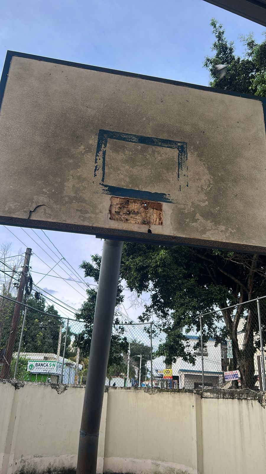 “En cuestiones de minutos Alberto Rodríguez envió una comitiva de la dirección provincial del INEFI la cual evaluaron los daños de la instalación deportiva y se comprometieron en menos de una semana colocar los tableros y entrega utilería deportiva.