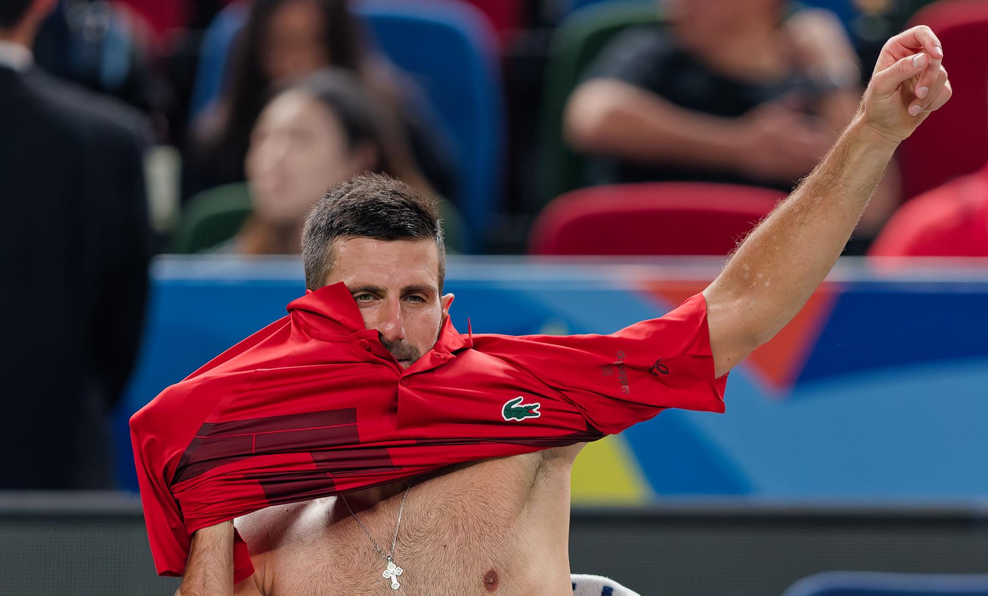 Una enorme bandera serbia con el número ‘100’ sobreimpreso adornaba hoy un vomitorio de la pista central de Qizhong: con el próximo trofeo que levante, el ‘Djoker’ alcanzará el centenar en toda su carrera.