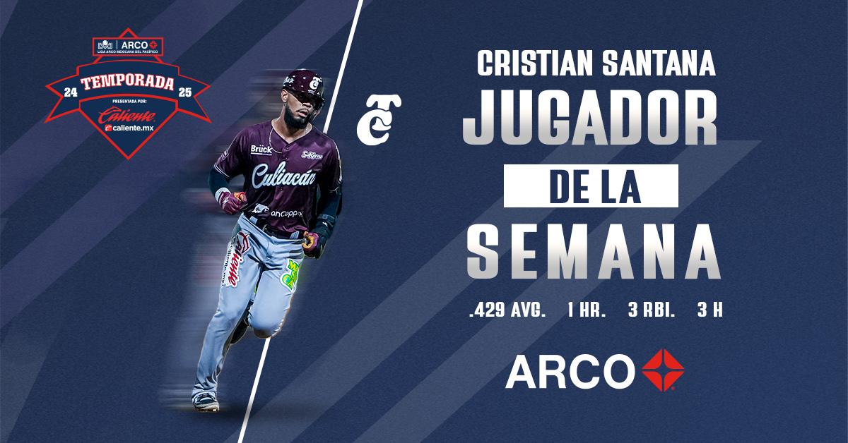 (Comunicación Liga ARCO).-El dominicano Cristian Santana, acaba de debutar en la Liga ARCO Mexicana del Pacífico y ya demostró su calidad, ya que en apenas dos juegos de las series inaugurales, se llevó el nombramiento a Jugador de la Semana, presentado por ARCO.