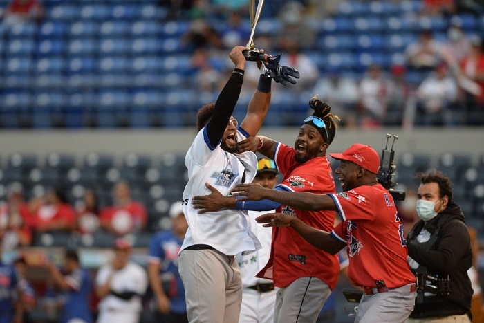 El dominicano José Rosario levanta el trofeo de campeón del Derby de Jonrones. Fuente Externa