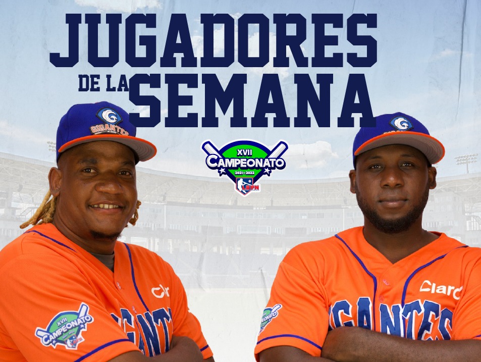 NICARAGUA.- El oufielder y Bateador Designado dominicano JESÚS VALDEZ y el zurdo dominicano EMAILIN MONTILLA, ambos de los Gigantes de Rivas, fueron seleccionados como los peloteros Más Destacados de la Séptima Semana, en el XVII Campeonato de la Liga de Beisbol Profesional Nacional, LBPN, en los juegos celebrados del 14 al 18 diciembre 2021.