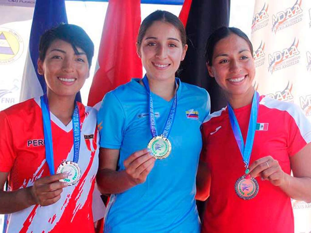 El segundo lugar femenino y medalla de plata fue para la peruana Mary Luz Andía, quien llegó a la meta con un tiempo de una hora, 35 minutos y 39 segundos, mientras el bronce en esta misma categoría la alcanzó la mexicana Alejandra Ortega con una hora, 36 minutos y cinco segundos.