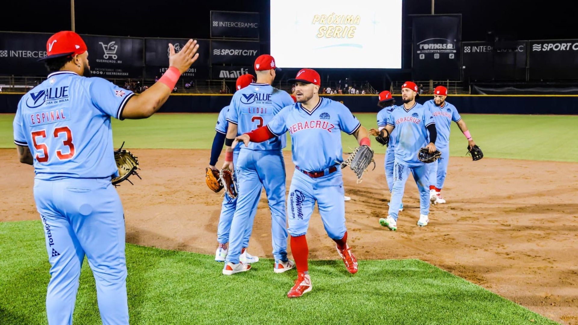Veracruz le dio la vuelta a la pizarra en la sexta entrada, con un ataque de tres carreras, con casa llena, Edwin Espinal conectó imparable productor al central y mandó al plato a Gustavo Núñez y Herlis Rodríguez, después Connor Panas pegó imparable productor y remolcó a Luis Avilés Jr. 3-1 la pizarra.