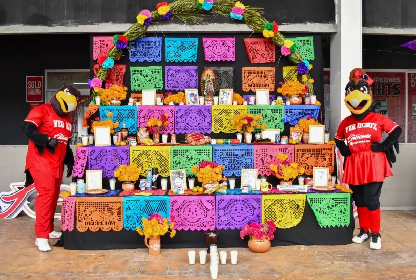 Boca del Río, Ver. (www.elaguilabeisbol.com) .- Entre flores y muchos colores como marca la tradición, El Águila de Veracruz rindió un homenaje a algunas de sus leyendas en el Altar Glorioso como parta del Día de Muertos.