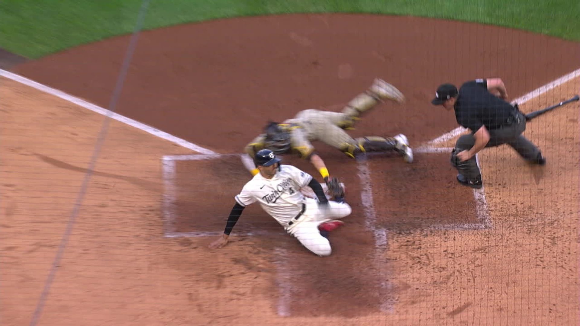 Tatis, nuevo en el jardín derecho después de abrirse paso en las Grandes Ligas como campocorto, atacó la pelota y la recogió del suelo en plena carrera. Su tiro pudo ser tomado por el hombre corte, Jake Cronenworth, pero éste la dejó pasar rumbo al plato. Sullivan la tomó con destreza y tocó a Correa, manteniendo la ventaja de los Mellizos en 2-0.