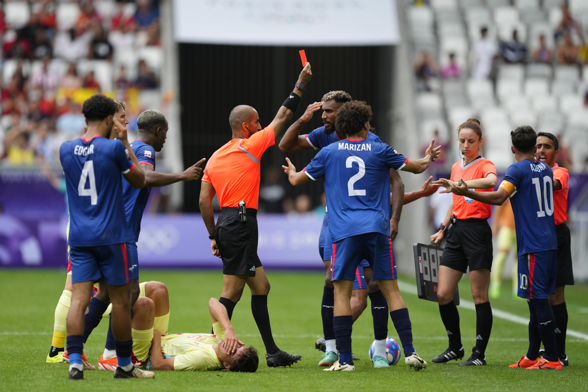 Redacción Deportes, 27 jul (EFE).- Edison Azcona, capitán de la República Dominicana, pidió «disculpa» por darle una patada este sábado en la entrepierna al central Paul Cubarsí, lo que le costó su expulsión, en el partido que el país caribeño perdió por 1-3 ante España en los Juegos Olímpicos París 2024.