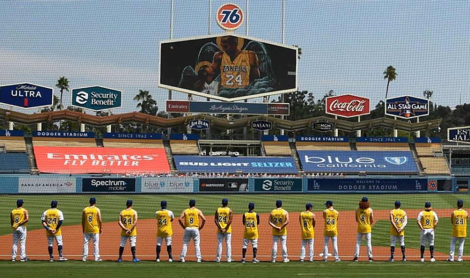 Los Angeles Dodgers le hicieron un gran homenaje a Kobe en su partido del domingo. FOTO: KEVORK DJANSEZIAN / GETTY IMAGES/ Fuente Externa