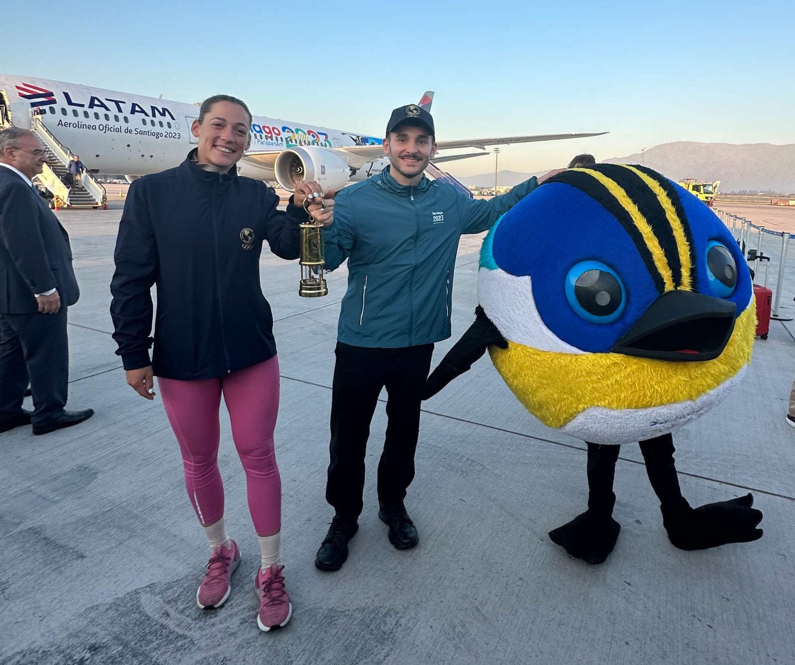 La lumbre panamericana fue escoltada no solo por las autoridades del Ministerio del Deporte, Panam Sports, el Comité Olímpico de Chile y la Corporación Santiago 2023. También en el avión de regreso se encontraban los deportistas Melita Abraham y Tomás González.