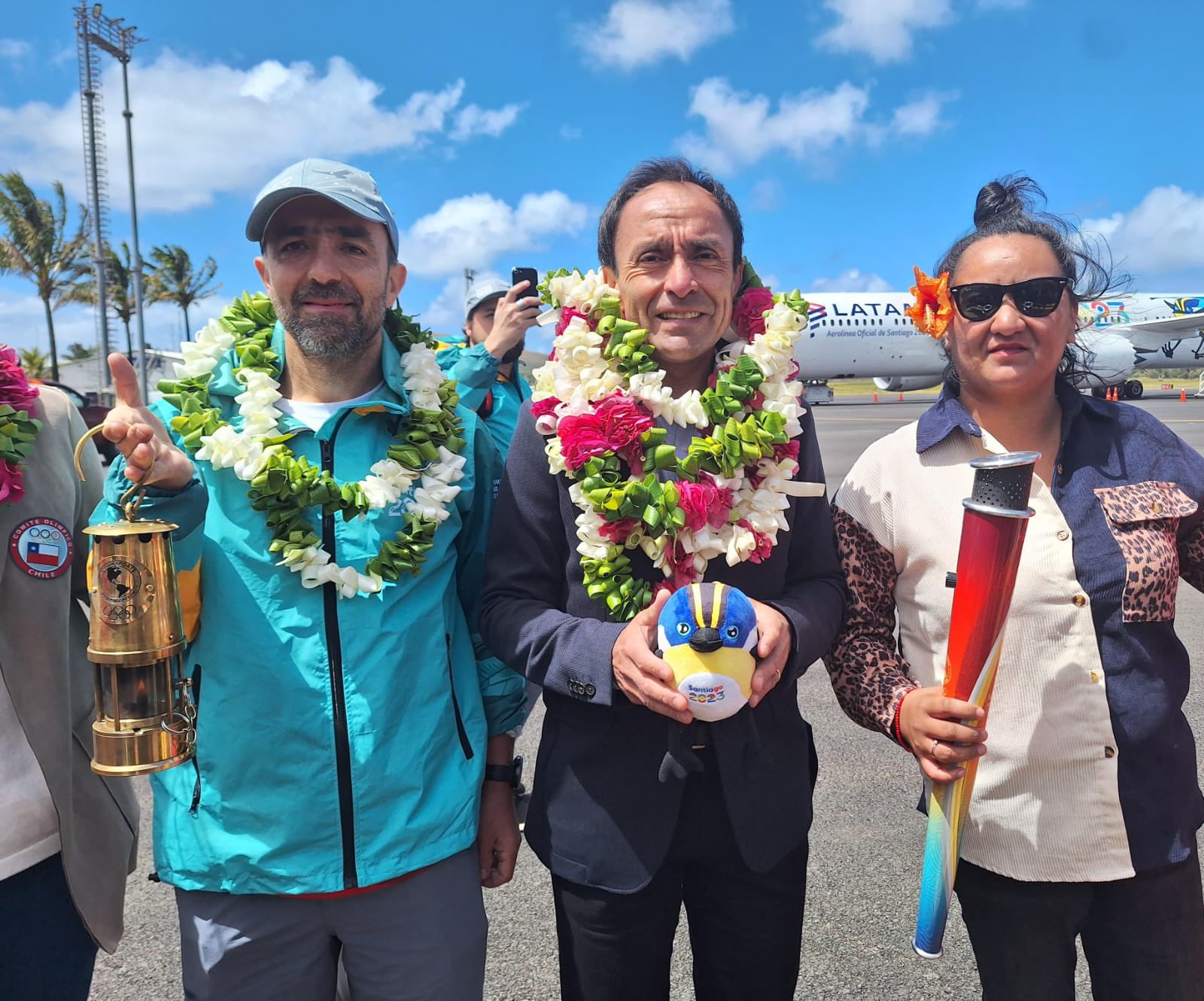 Una de las tres antorchas comenzó su viaje hacia la capital desde Rapa Nui, donde el propio ministro del Deporte, Jaime Pizarro, fue el encargado de iniciar el recorrido.
