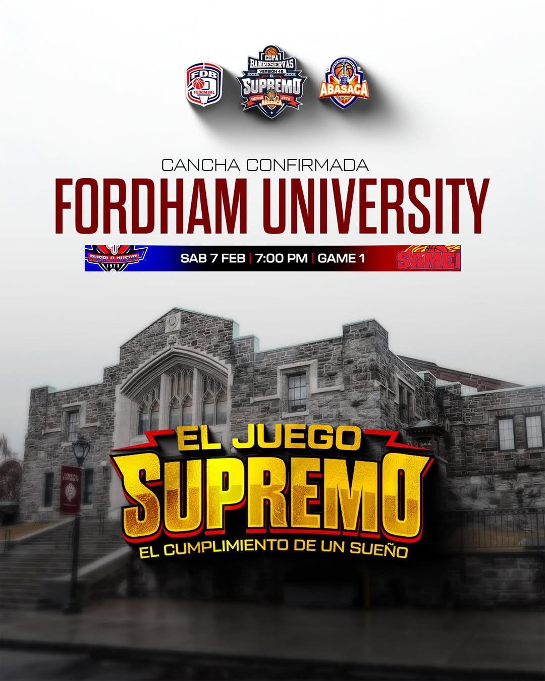 New York.– Todo está listo para la celebración de “El Juego Supremo, el cumplimiento de un sueño”, un evento de gran trascendencia deportiva e institucional se jugará en Fordham University, una de las más prestigiosas casas de estudios superiores de la ciudad de New York.