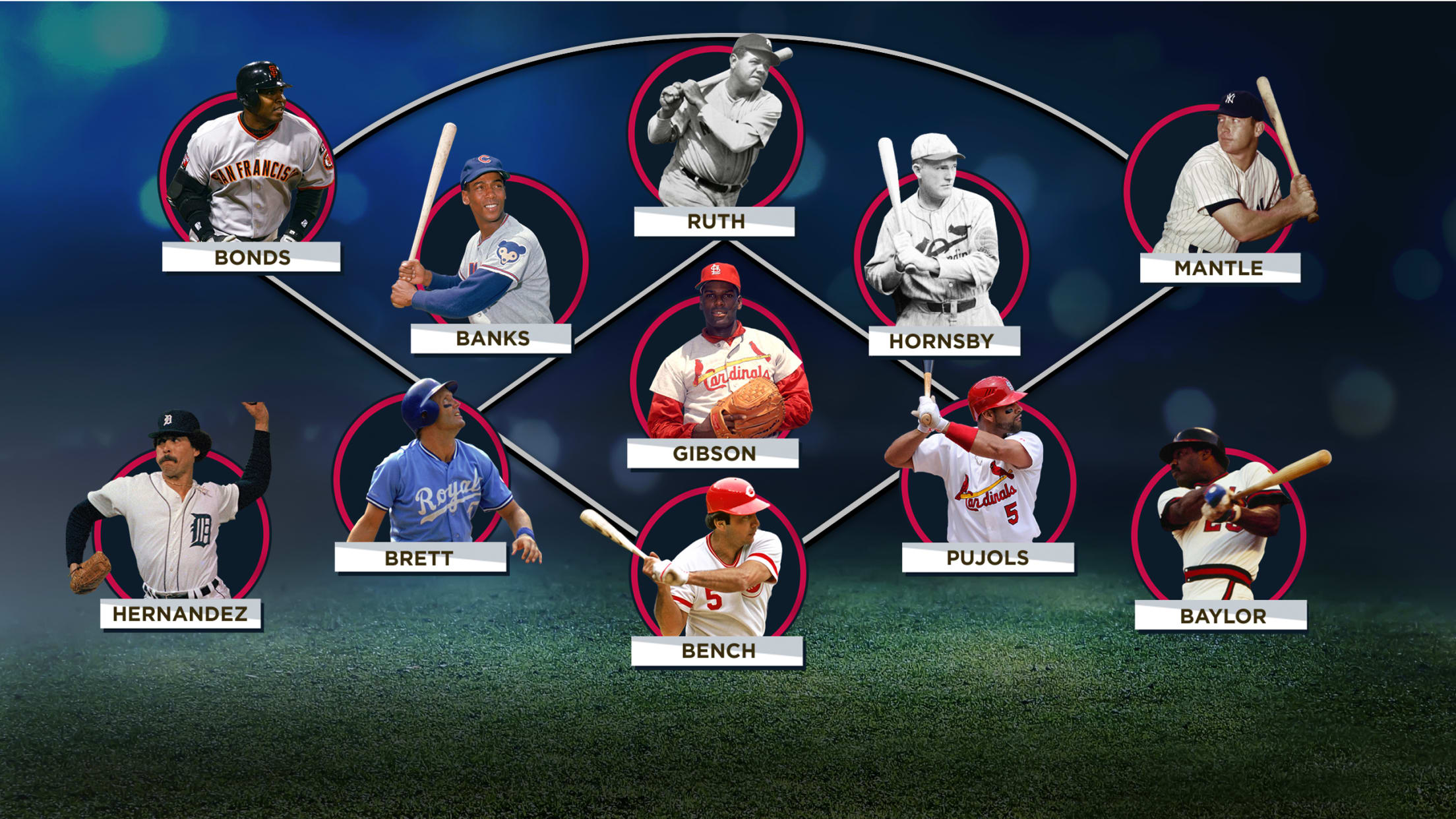 Outfield: Babe Ruth, Yankees de 1923; Barry Bonds, Gigantes del 2001; Mickey Mantle, Yankees de 1956