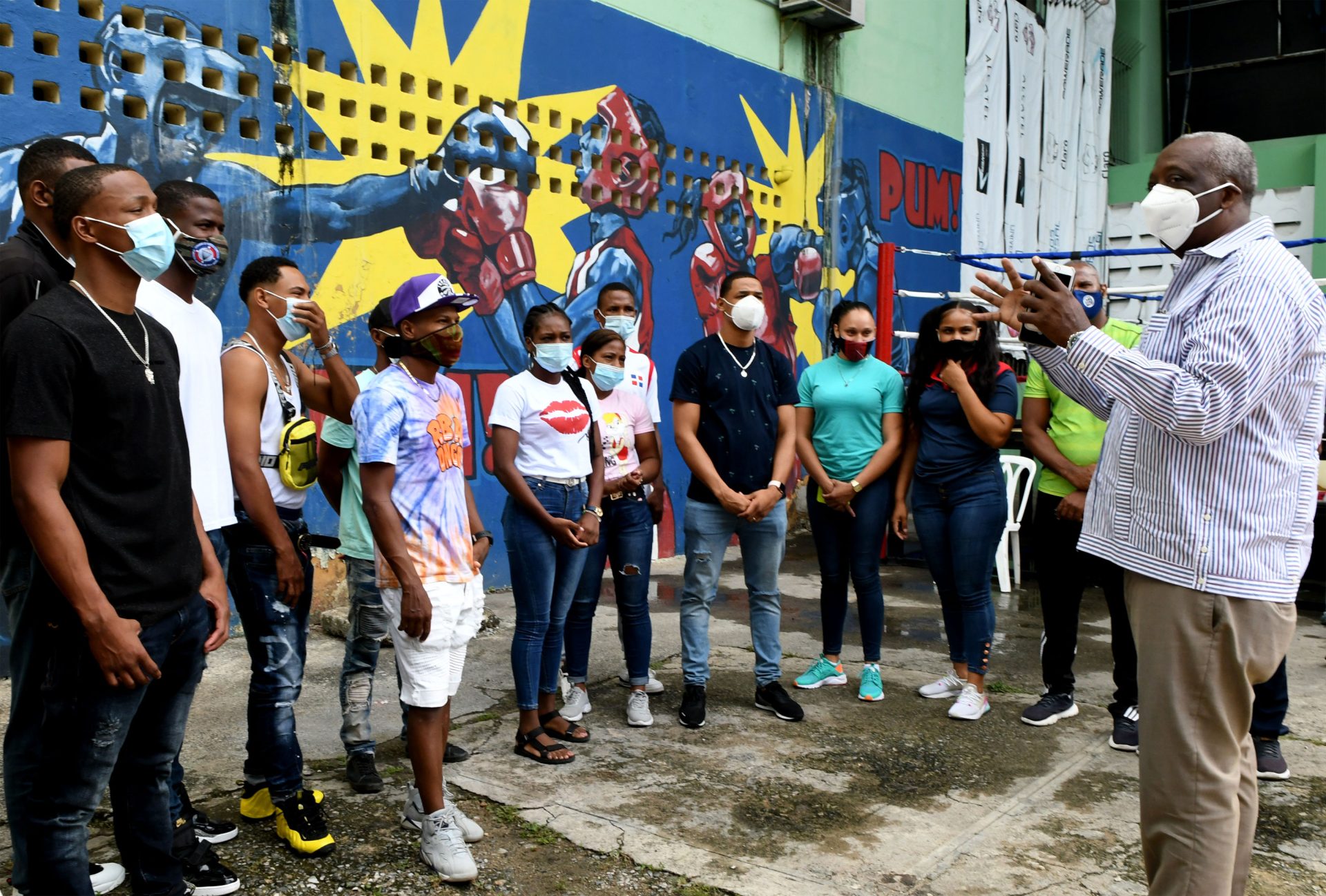 Hernández habló a los atletas de la importancia de mantener el distanciamiento físico y mantenerse protegidos utilizando mascarillas. Les exhortó, asimismo, a cuidar de sus familias.