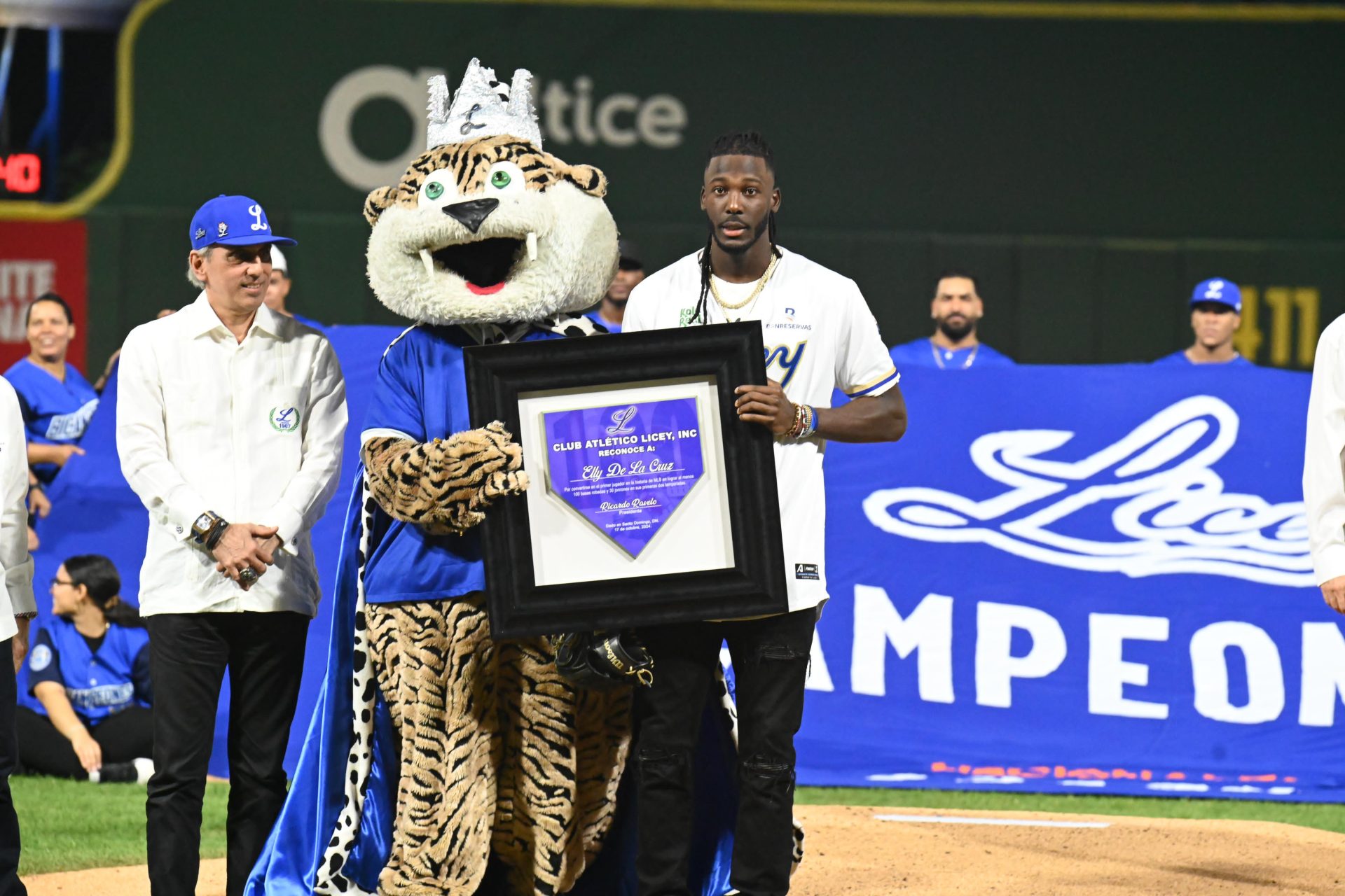 SANTO DOMINGO.- Los bicampeones nacionales, Tigres del Licey, dieron apertura a la temporada 2024-25 este jueves 17 de octubre con una majestuosa ceremonia que incluyó el lanzamiento de la primera bola por parte del estelar jugador de Grandes Ligas, Elly De La Cruz.
