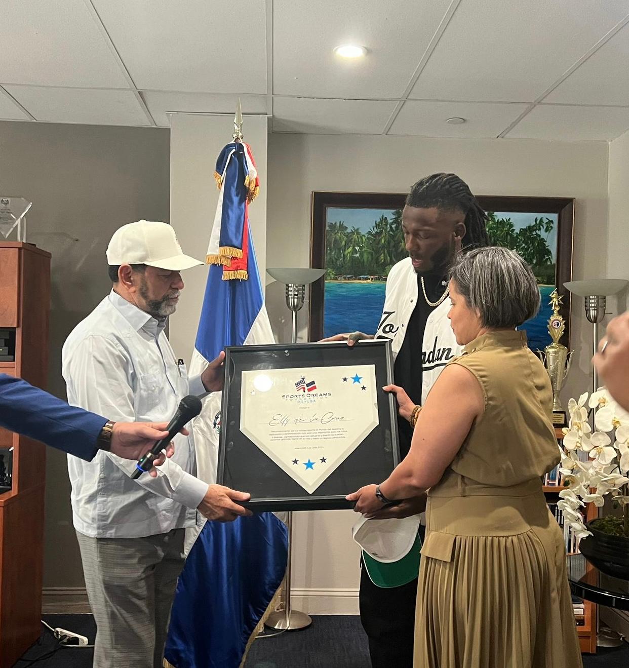 La Fundación Sports Dreams Foundation DR-USA valora profundamente el compromiso de Elly de la Cruz con el desarrollo social, educativo y comunitario, reconociendo su invaluable aporte al fomento de valores positivos a través del deporte. Su impacto positivo en la juventud ha sido evidente, sirviendo como un modelo a seguir para las generaciones venideras.
